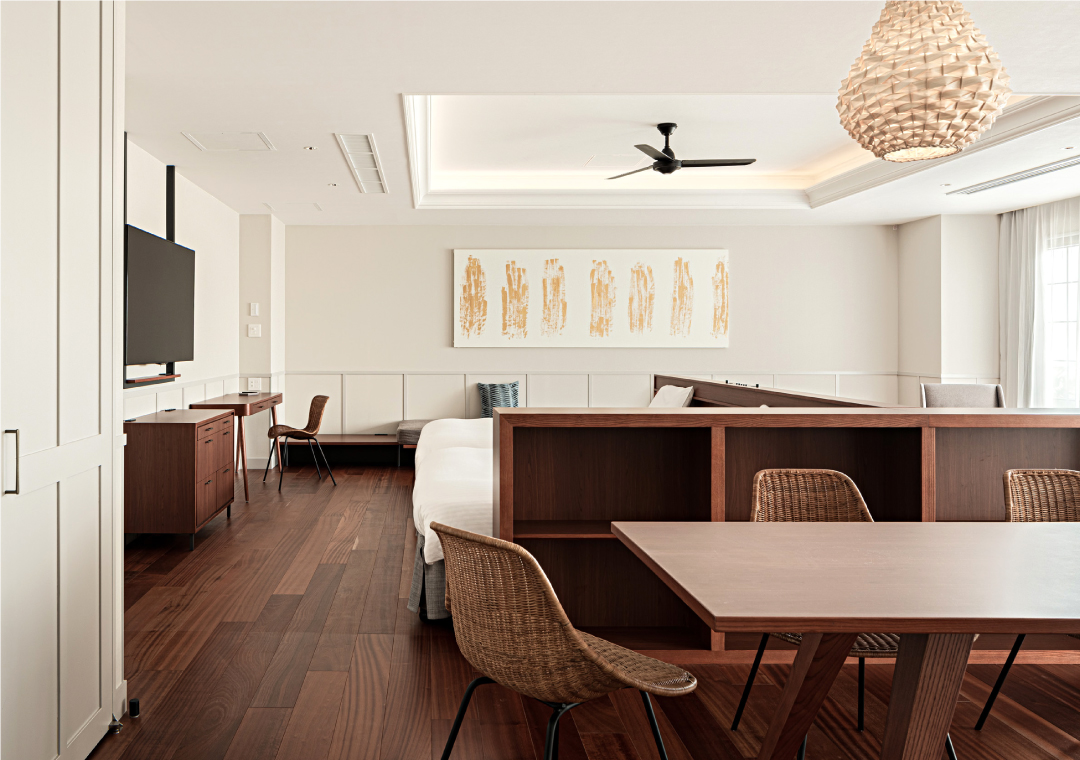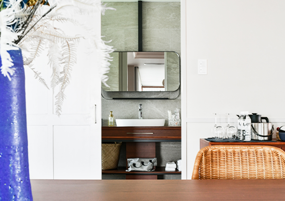 全自動洗濯乾燥機とミニキッチンを設置。全室空気清浄機完備でWi-Fiも無料でご利用いただけます。一日がお部屋の中だけで完結する自分だけのリゾート体験を。
