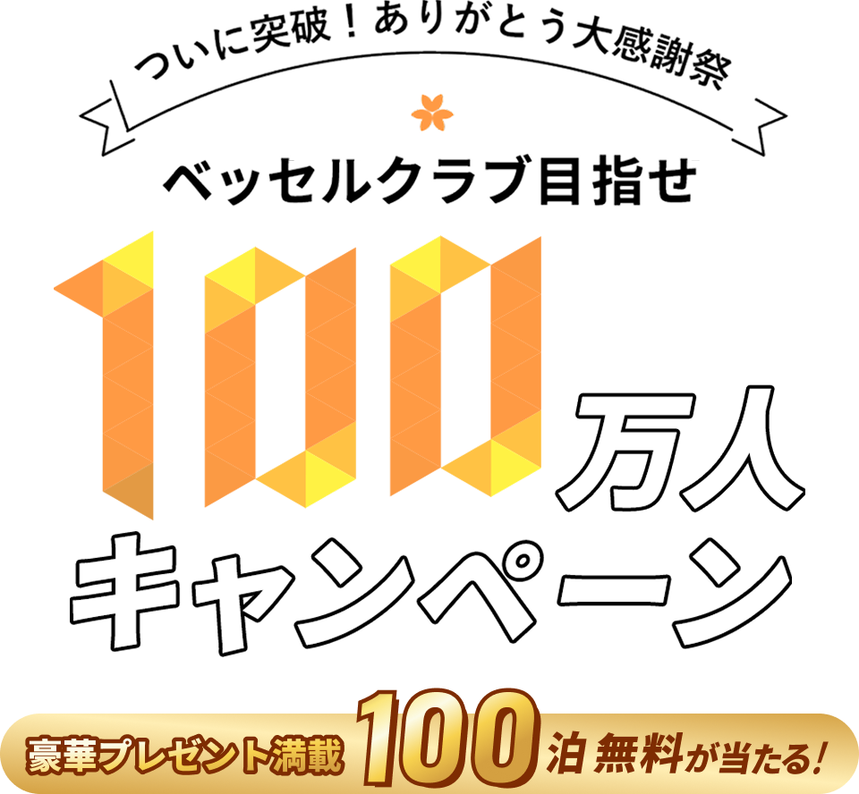株式会社ベッセルホテル開発(以下「当社」といいます。)が実施する「ついに突破!ありがとう大感謝祭 100万人キャンペーン」(以下、「本キャンペーン」といいます。)へ応募を希望される方は、このキャンペーン規約(以下「本規約」といいます。)をよくお読みいただき、同意のうえ応募してください。本キャンペーンに応募された場合には、本規約に同意したものとみなします。万が一同意いただけない場合は応募を中止してください。