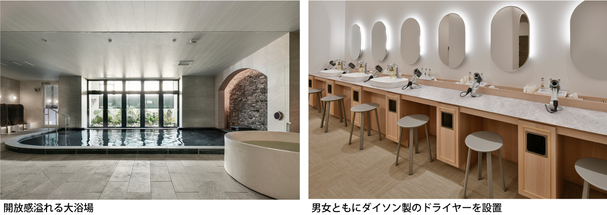 ベッセルホテルズで初めての天然温泉「北谷温泉」。地下1,400mからくみ上げた天然温泉で旅の疲れを癒し、ゆったりとした時間をおくつろぎいただけます。解放感あふれる大きな窓が特徴の大浴場は、男女共にサウナを完備。天然温泉は、屋上プールの岩風呂にも使用されております。
