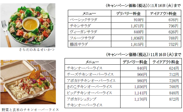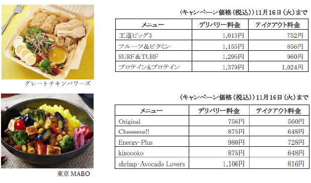 オープニングを記念して、11月16日(火)までデリバリーは全品30%割引、テイクアウトは全品20%割引キャンペーンを実施いたします。