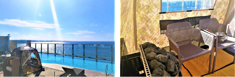 そのような中、オフシーズンはクローズドになる屋上プールの空間を利用し、テントサウナを設置し、東シナ海に面したプールを水風呂としてご利用いただき、絶景と開放感を楽しんでいただけるプランをご用意いたしました。