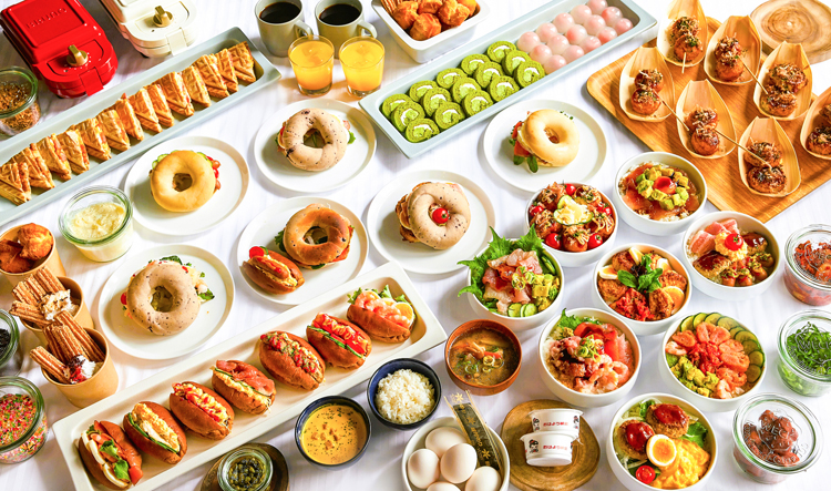 ベッセルホテルズでは朝ごはんを通じてしあわせと元気をお届けしたいと思い「しあわせ朝ごはん」をテーマに、各ホテルオリジナルの朝食を提供しています。ベッセルインなんばでは、「ワンハンドフードONE HAND FOOD!」をコンセプトに、サンドイッチや大阪代表ワンハンドフードのたこ焼きを中心に約80種類のメニューをご用意いたします。サーモンとチーズ、たっぷりの野菜を重ねた「スモーブロー」(デンマーク風オープンサンドイッチ)やお子様におすすめのコッペパンサンド、サラダ感覚で食べられるマグロアボカド丼、ボリューム感のあるロコモコボウルなど、お客様のお好みに合わせた朝食をお楽しみいただけます。テイクアウトにも対応しているため、1階ラウンジの朝食会場だけでなく、客室や道頓堀沿いの遊歩道など屋外でも朝食をお召しあがりいただくことができます。