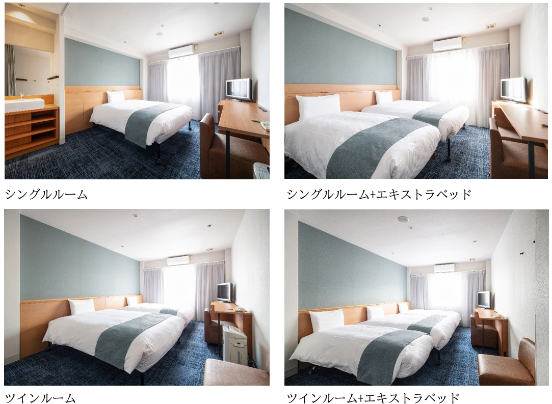 全客室と廊下の天井、壁面のクロス、カーペットの張り替えおよび照明を一新。客室はデスク、洗面まわり、浴室、遮光性の高いカーテンを導入しリニューアル、お客様が過ごしやすい配置、機能的な家具を取り入れました。全室ご自宅のように靴を脱いでくつろぐことができ、旅先でも安心して過ごせます。またスマートテレビを導入し、「Hulu」や「YouTube」など多くの動画配信サービスをお楽しみいただけます。※一部動画配信サービスはアカウント登録が必要となります。