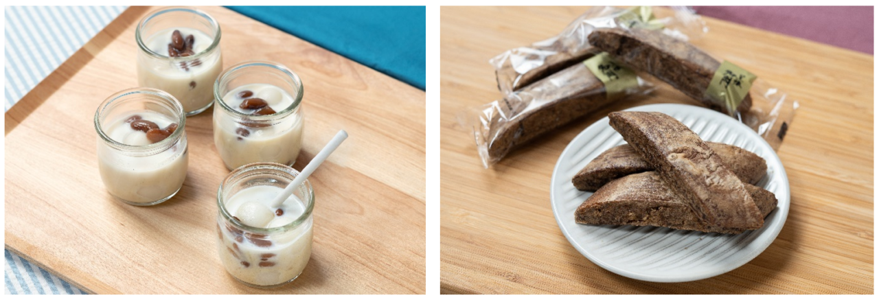 さつまいもの生産が盛んな熊本をイメージしたスイーツです。さつまいもと阿蘇小国ジャージー牛乳をベースに、大学芋、金時豆、白玉だんごを入れて、シナモンの風味を効かせたオリジナルぜんざいです。