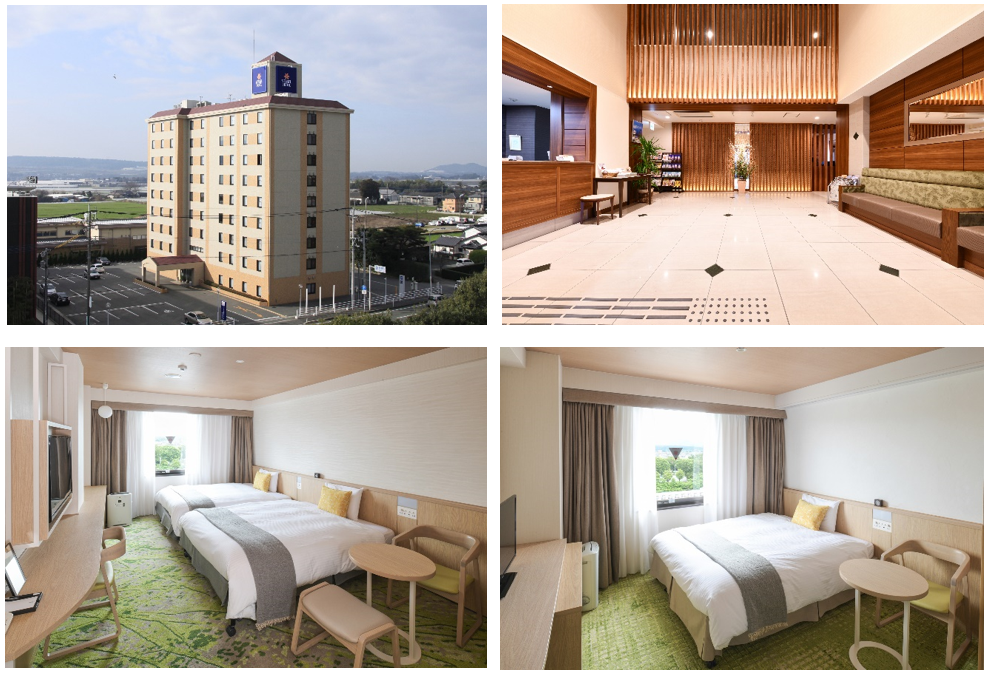 「熊本I.C.」から車で約23分。「肥後大津駅」から1.5km、車で約3分の立地です。78台収容可能な平面駐車場は無料で車旅に便利です。ホテルの客室全132室は、2023年8月に改装が完了。お部屋は靴を脱いでお過ごしいただけるようになり、安心で快適な空間に生まれ変わりました。館内には、急な洗濯にも便利なコインランドリー、自動販売機、製氷機、電子レンジ、無料で利用できるパソコン・プリンターがございます。また、レンタサイクル、アイロン、ズボンプレッサー、傘など多数の貸出品をご用意しております。
