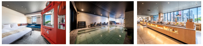 伊予鉄「松山市駅」に隣接した最高のロケーション。ホテルのコンセプトは、「THE STATION」で、鉄道をイメージしたコンセプトルーム「伊予鉄ルーム」を設置し、客室の窓からは、路面電車のレールビューが望め、鉄道ファンはもちろん、幅広いお客様に鉄道の旅気分をお楽しみいただけるようなデザインとなっております。また、館内にはサウナ付き大浴場や貸し切りでゆったり利用できる家族風呂を設け、宿泊のお客様はもちろん、日帰り利用でもご利用いただけるよう、くつろぎの空間をご提供。