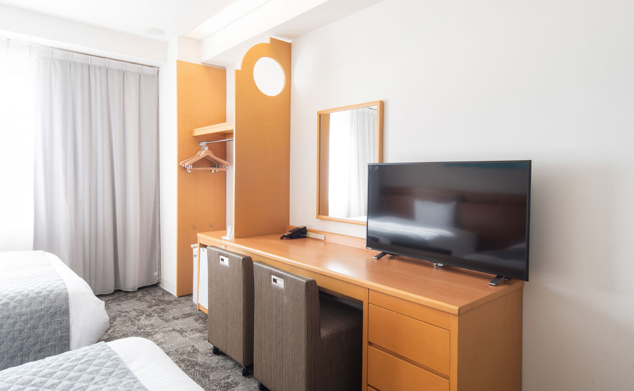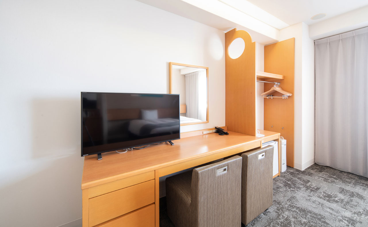 全室150cm幅のベッド完備で、ゆったりとした客室。お荷物が多くても、2名でご宿泊でも、余裕の広さです。