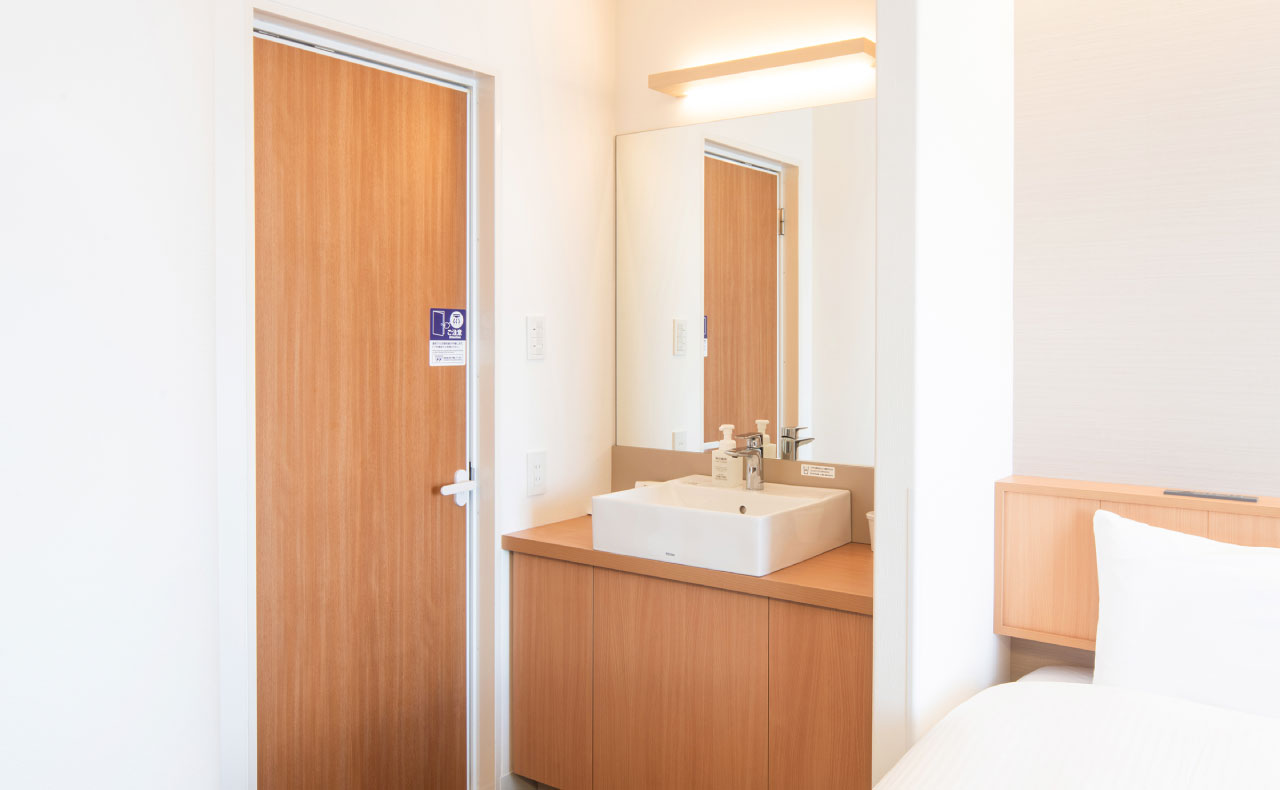 バス・トイレと一緒に洗面台のあるホテルが多いなか、当ホテルではバス・トイレとは別に洗面台を設置。鏡も大きく、ゆったりご利用になれます。