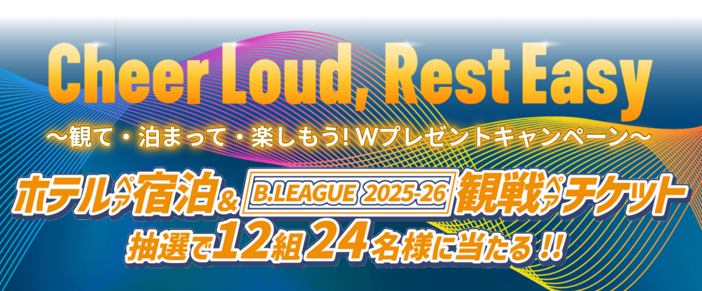 このたび「無料ペア宿泊」と「Bリーグ観戦ペアチケット」が抽選で〈合計12組24名様〉に当たるInstagramキャンペーンをご用意いたしました。