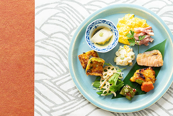 朝食ビュッフェおばんざいをはじめ、老舗の小川珈琲や洋食パンまで、和洋どちらも味わえる、ハイブリッドな朝ごはんをご堪能いただけます。