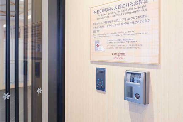 セキュリティーセキュリティーのため、夜0時を過ぎるとホテル入館にはカードキーが必要となっております。24時間フロントにスタッフがいるので安心です。