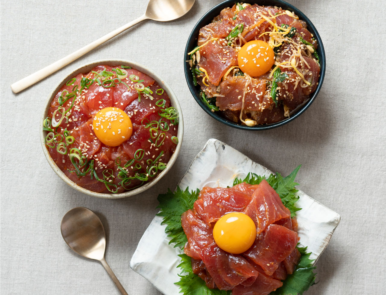 美味しい新鮮なまぐろ、ねぎ、とろろ、錦糸卵などお好きな具材を乗せてまぐろ丼を作る事ができます。ぜひお召しあがりください。
