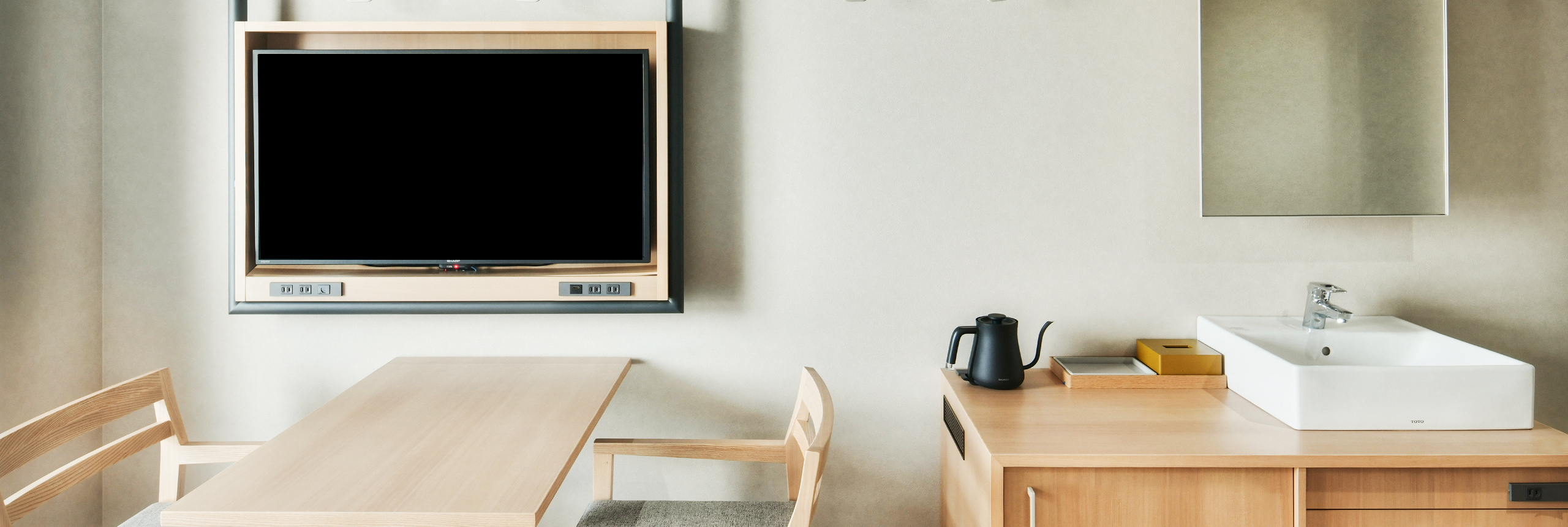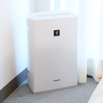 お部屋の中の空気をクリーンに保つ加湿機能付空気清浄機を全室に導入しております。